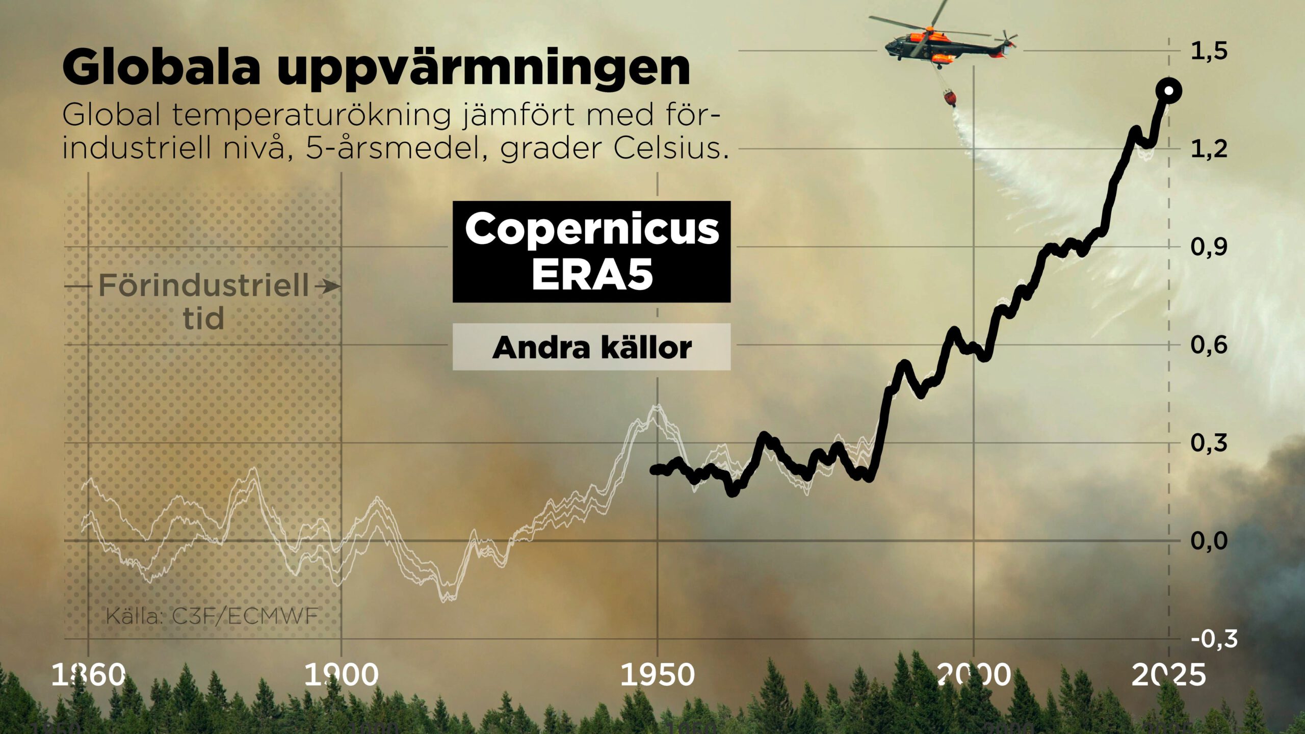 Kommentarer stängdaFörra året var det tredje varmaste som hittills uppmätts, rapporterar EU:s klimattjänst Copernicus. Och för första gången har Parisavtalets 1,5-gradersgräns överstigits under en treårsperiod.